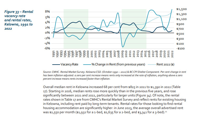 We instead need to focus on building the right housing and lowering costs for our residents by fixing our local rental vacancy rate. For too many years, it has sat below the healthy (as defined by the CMHC) 3%-5% threshold, leading to skyrocketing rents and increased housing insecurity. This chart from the City of Kelowna’s own Housing Needs Assessment demonstrates this simple fact. Any plan to fix the housing crisis that ignores the basics of supply and demand is simply doomed to fail.